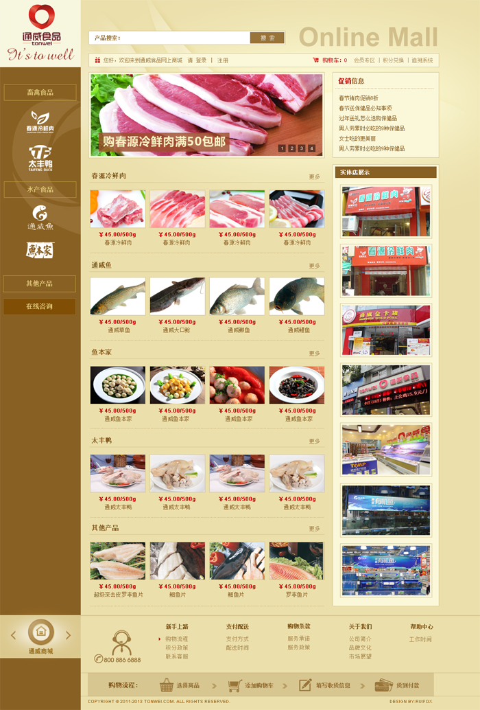 通威食品是大型科技型上市公司通威股份重点打造的食品产业。企业网站由四川锐狐网络建设,旗下涵盖成都新太丰农业、成都春源食品、成都水产食品、海南水产食品、成都通威鱼、广东通威鱼、巨恒海产品、润兆渔业、成都三文鱼、山东淄博食品等多家大型现代食品加工企业及销售公司。主要涉足水产、畜禽两大食品领域。